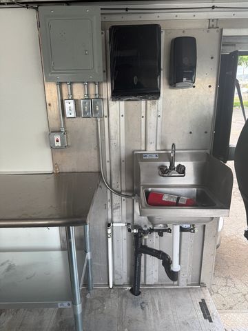 Large exterior service window with 10ft retractable awing and 5ft foldable service counter. Ample wall space on both sides for custom logo and menu